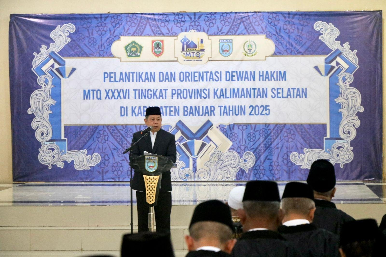 Riceknews.Id – Kepala Kantor Wilayah Kementerian Agama (Kakanwil Kemenag) Provinsi Kalimantan Selatan (Kalsel), Muhammad Tambrin, melantik 112 orang Dewan Pengawas, Dewan Hakim, dan Majelis Hakim Musabaqah Tilawatil Quran (MTQ) Nasional XXXVI Tingkat Provinsi Kalsel Tahun 2025. Ratusan dewan hakim ini akan didukung 22 panitera yang akan bertugas di 11 lokasi perlombaan (venue).