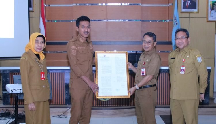 Sertifikat Akreditasi diterima Direktur RSUD Raza, Tofik Norman Hidayat yang diserahkan Bupati Banjar H Saidi Mansyur didampingi Sekda HM Hilman sebelum rapat koordinasi mingguan di Aula Barakat lantai II Kantor Bupati Banjar,Senin (16/01/2023).