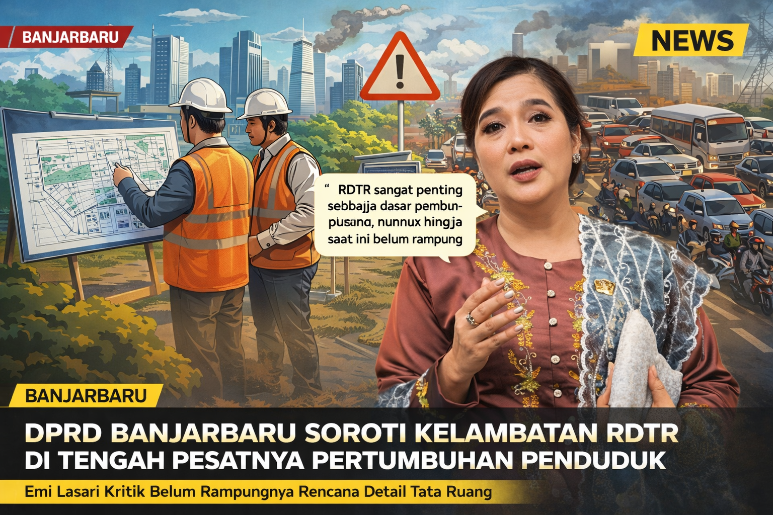 Anggota Komisi II DPRD Kota Banjarbaru, Emi Lasari, menegaskan bahwa capaian pembangunan yang positif harus diimbangi dengan kesiapan perencanaan tata ruang yang matang agar tidak menimbulkan persoalan di masa depan.