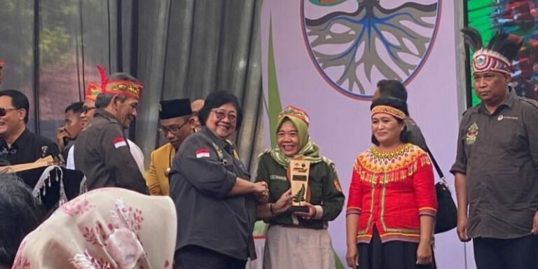 Penyerahan anugerah langsung oleh Menteri LHK Siti Nurbaya dan diterima DLH Kota Banjarbaru yang diwakili Kepala Bidang Tata Kelola Ruang Rusmilawati, di Taman Wisata Alam Bukit Tangkiling Kota Palangkaraya Kalimantan Tengah, Rabu (8/11/2023).