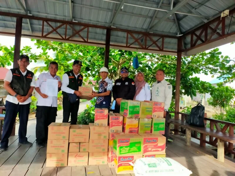 Penyaluran bantuan dilakukan melalui jalur air menuju tiga desa yang kerap terdampak banjir rob, yaitu Desa Tanipah, Desa Bakambat, dan Desa Labat Muara.