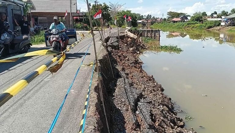 Siring penopang badan jalan pinggir Sungai Martapura di Jalan Inayatullah RT 01 Desa Dalam Pagar, Martapura Timur, Kabupaten Banjar kembali ambruk. Padahal, siring tersebut umur perbaikannya belum sampai satu tahun.