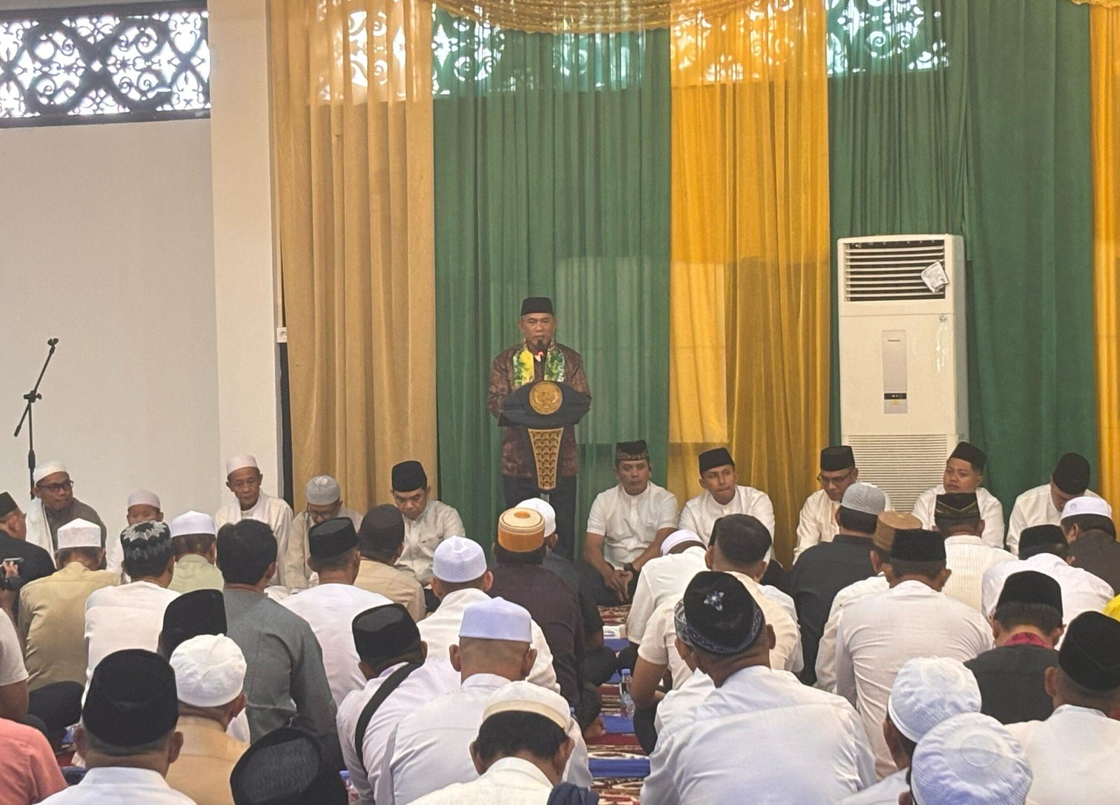 Acara diawali dengan tausiyah oleh Guru Bahrudin dan salat Magrib berjemaah. Dalam sambutannya, Bupati Rusli menyampaikan rasa syukur atas kesempatan bersilaturahmi dan berbuka puasa bersama di awal bulan Ramadan.