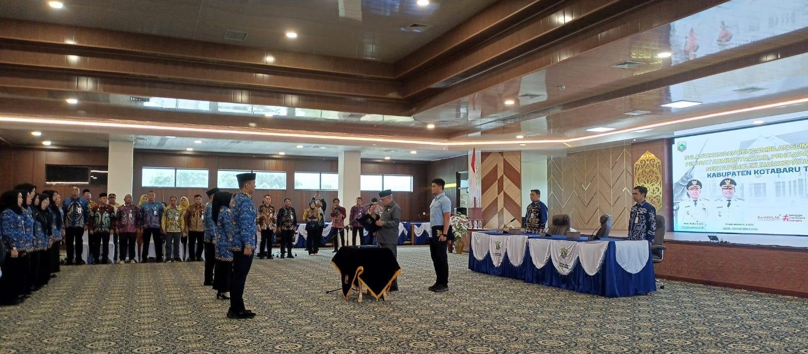 Kotabaru, Ricek.ID – Bupati Kotabaru Muhammad Rusli, melantik dan mengambil sumpah jabatan pejabat administrator, pengawas, serta fungsional, sekaligus mengukuhkan kepala puskesmas di lingkungan Pemerintah Kabupaten Kotabaru tahun 2026. Kegiatan tersebut berlangsung di Aula Sekretariat Daerah Kabupaten Kotabaru, Kamis (12/3/2026).