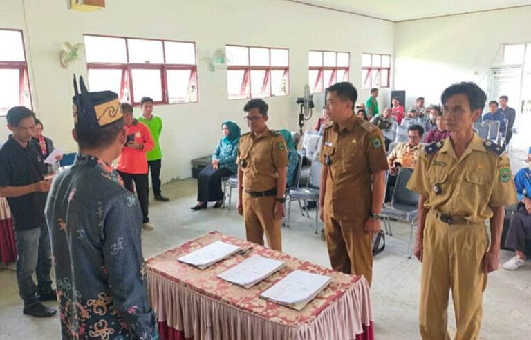 Penjabat (Pj) Bupati Kapuas, Erlin Hardi, melalui Camat Mantangai, Yubderi, melantik tiga Penjabat (PJ) Kepala Desa di Aula Kantor Camat Mantangai, Kabupaten Kapuas, Jumat (12/1/2024).