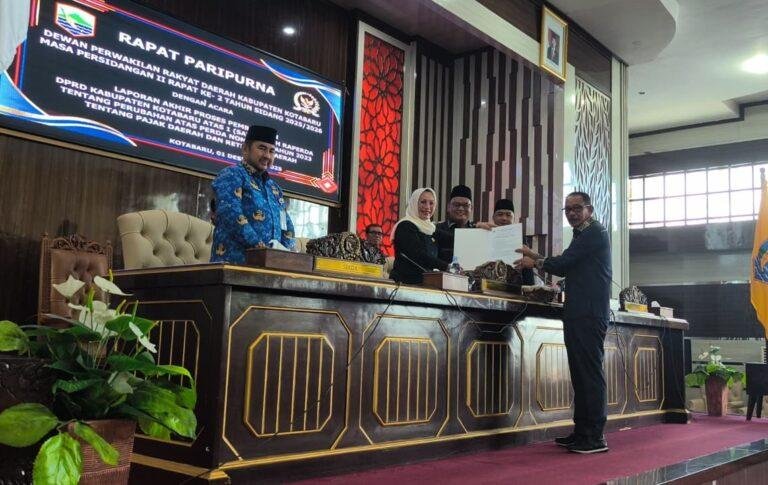 Kotabaru, Ricek.ID – Dewan Perwakilan Rakyat Daerah (DPRD) Kabupaten Kotabaru menggelar Rapat Paripurna pada Senin (1/12/2025) di gedung DPRD. Rapat tersebut mengagendakan penyampaian laporan akhir dan persetujuan terhadap satu Rancangan Peraturan Daerah (Raperda) tentang Perubahan atas Perda Nomor 10 Tahun 2023 tentang Pajak Daerah dan Retribusi Daerah.
