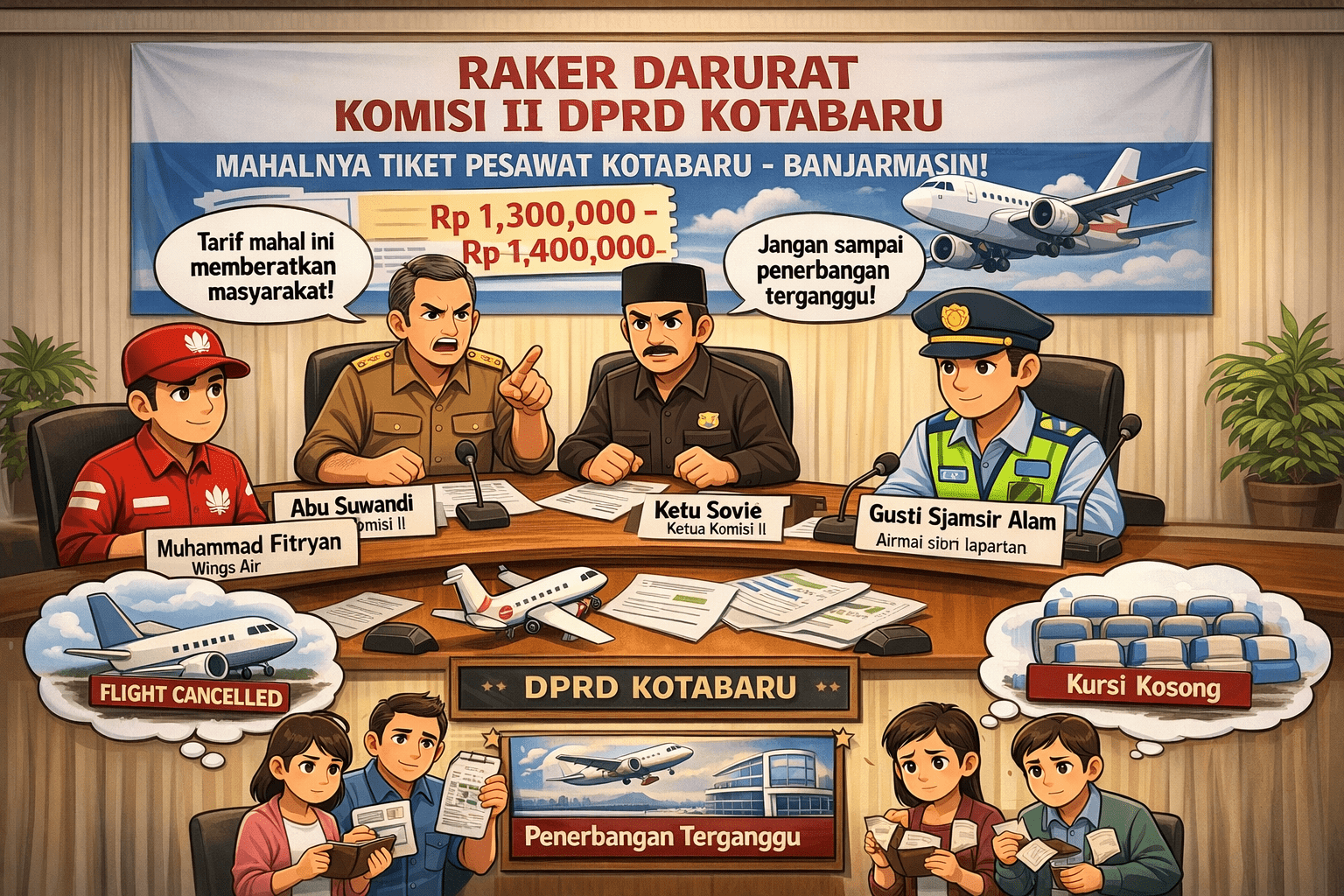 Menyikapi hal itu, Komisi II DPRD Kotabaru menggelar rapat kerja (raker) darurat dengan menghadirkan sejumlah pihak terkait, di antaranya Dinas Perhubungan, Diskominfo, pengelola Bandara Gusti Sjamsir Alam, serta perwakilan Wings Air (Lion Group), Senin (2/3/2026).