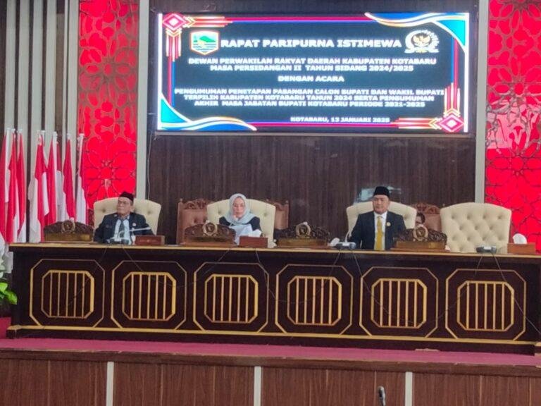 Riceknews.Id – DPRD Kotabaru Menggelar Rapat Paripurna Istimewa Tentang Pengumuman Penetapan Pasangan Calon Bupati dan Wakil Bupati Kotabaru terpilih periode 2025-2030. Pengumuman ini juga mencakup Akhir Masa Jabatan Bupati dan Wakil Bupati Periode 2021-2025.