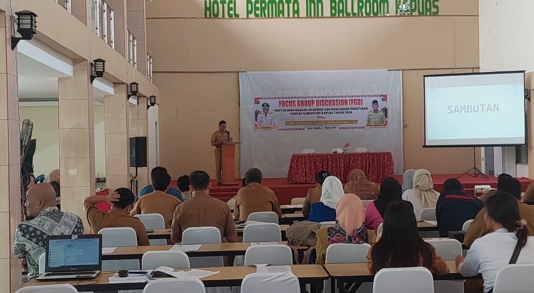 Dinas Penanaman Modal dan Pelayanan Terpadu Satu Pintu (DPMPTSP) Kapuas Kalimantan Tengah, gelar Focus Group Discussion (FGD) penyusunan naskah akademik dan rancangan peraturan daerah Kabupaten Kapuas 2024 tentang pemberian insentif dan kemudahan investasi, Selasa (26/3/2024).