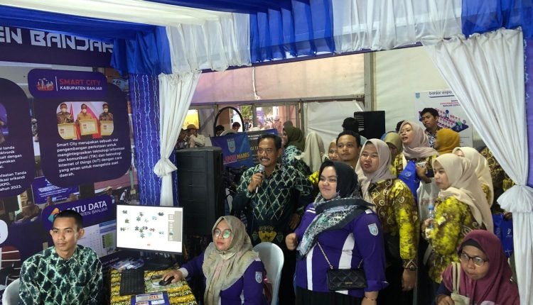Stand Dinas Komunikasi Informatika Statistik dan Persandian (DKISP) Kabupaten Banjar dalam Banjar Expo 2023 selalu ramai pengunjung.