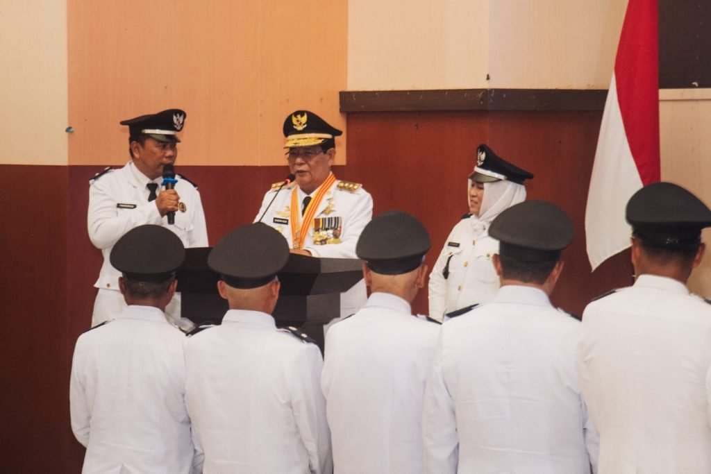 Dalam sambutannya Paman Birin menyampaikan selamat kepada kepala desa yang dikukuhkan untuk perpanjangan masa jabatan selama 2 tahun.