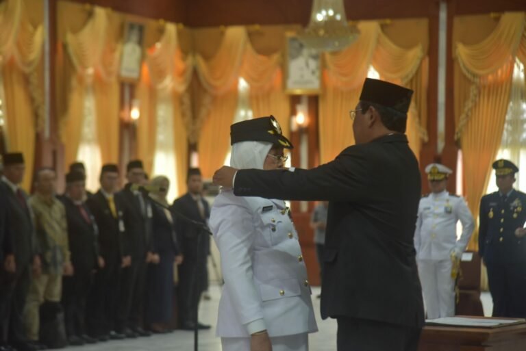 Gubernur Kalimantan Selatan H Sahbirin Noor, resmi melantik Sekretaris Daerah (Sekda) Kabupaten Tabalong Hamida Munawarah sebagai Penjabat (Pj) Bupati Tabalong, di Gedung Mahligai Pancasila Banjarmasin, Jum’at (22/3/2024).