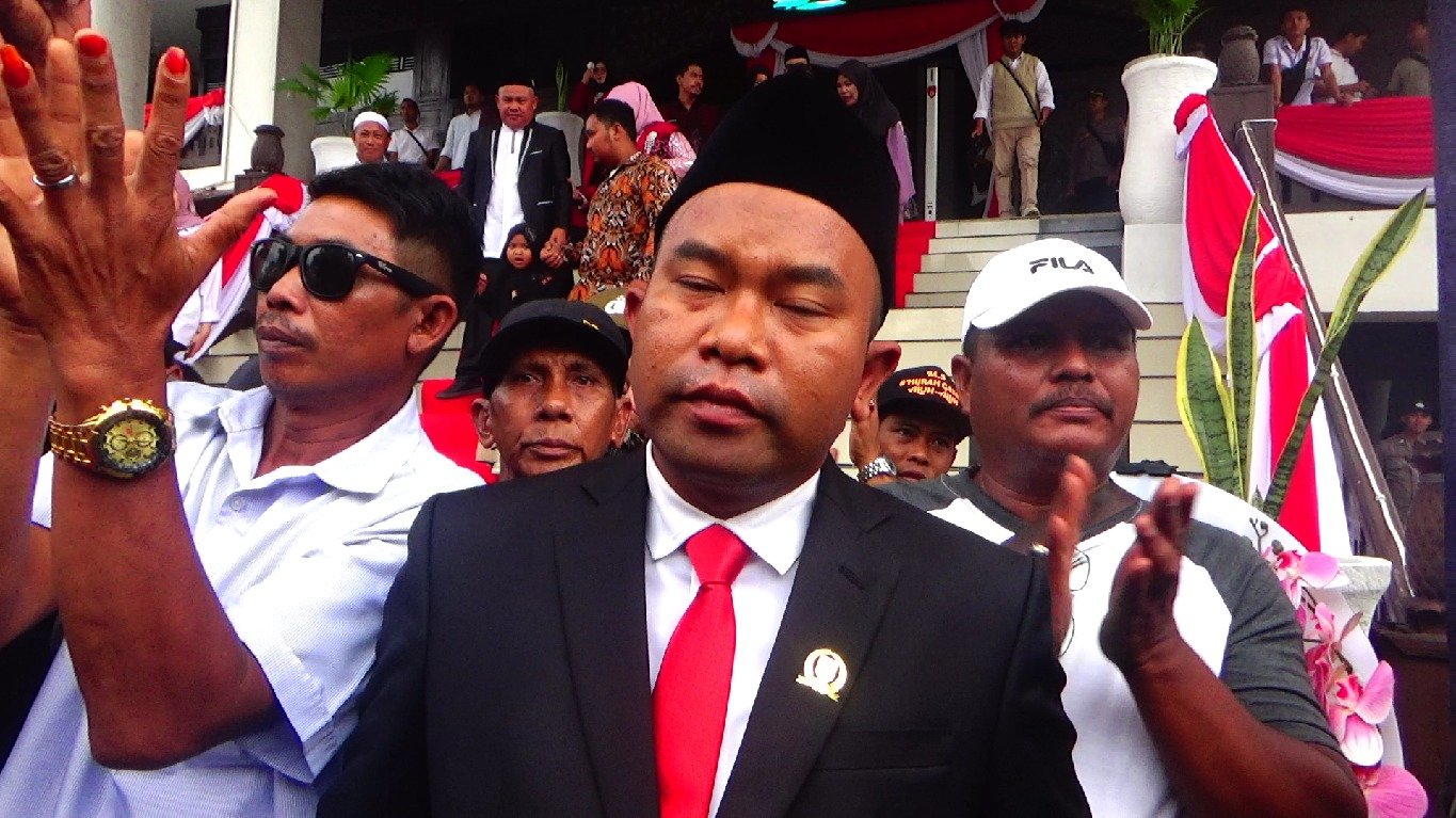 “Kami dari kecamatan Aluh Aluh ada ratusan orang, datang ke sini untuk mengucapkan selamat atas pelantikan anggota DPRD pilihan kami Muhammad Saidi,” ucap Muhammad Jainuddin, warga desa Tanipah.