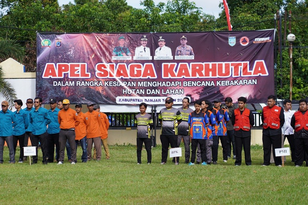 Untuk menyatukan persepsi dan koordinasi dalam pencegahan dan penanggulangan kebakaran hutan dan lahan (Karhutla), Pemerintah Kabupaten Banjar melalui Badan Penanggulangan Bencana Daerah (BPBD) menggelar Apel Siaga Bencana Karhutla Tahun 2024, di halaman kantornya di Kawasan Indrasari Martapura, Rabu (31/7/2024) pagi.