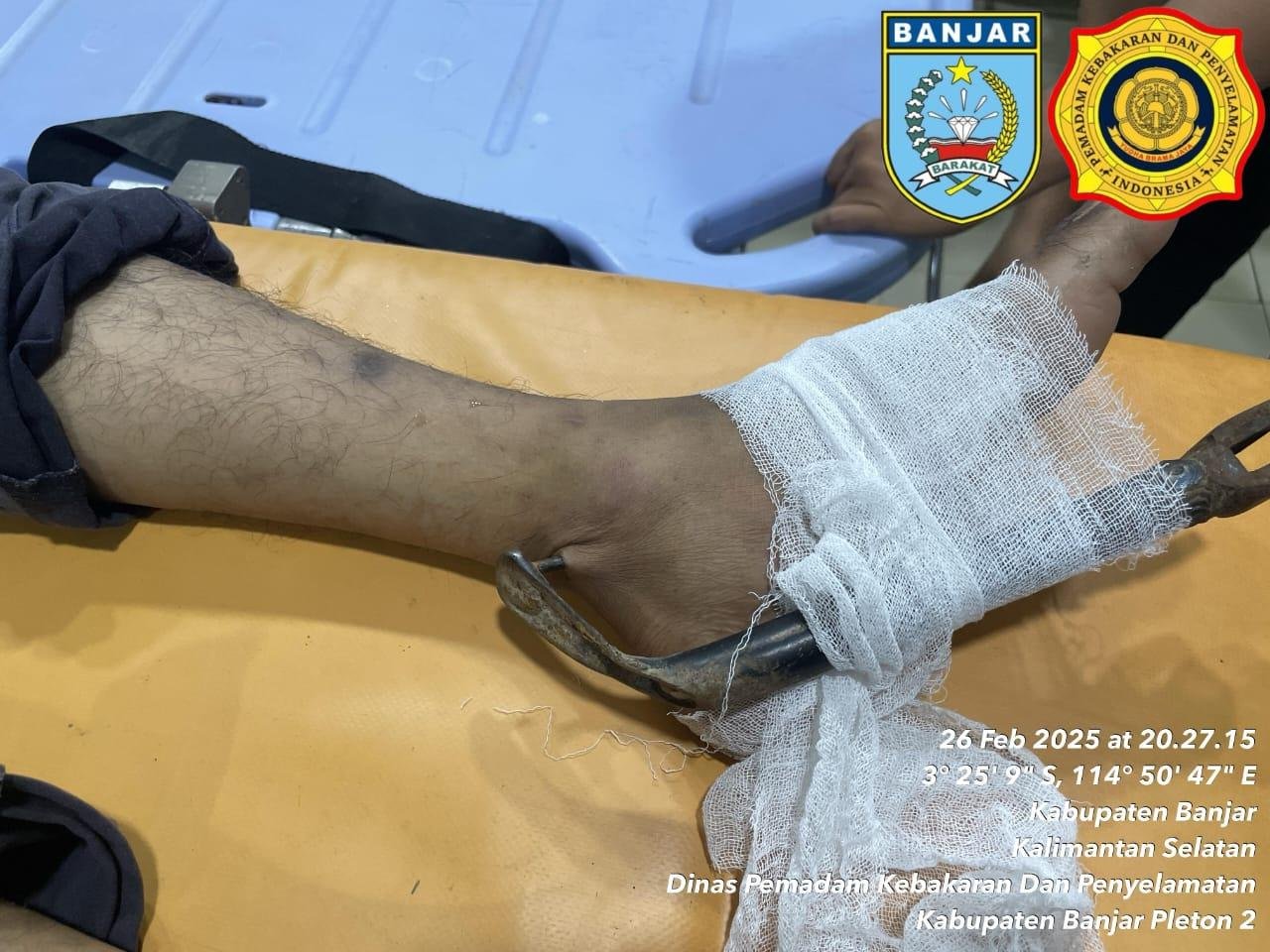 Riceknews.id – Seorang pengendara sepeda motor mengalami insiden kaki kiri tertusuk standar motor di Jalan Kyai Haji Anang Syahrani Arif, Desa Mekar, Martapura Timur, Kabupaten Banjar.
