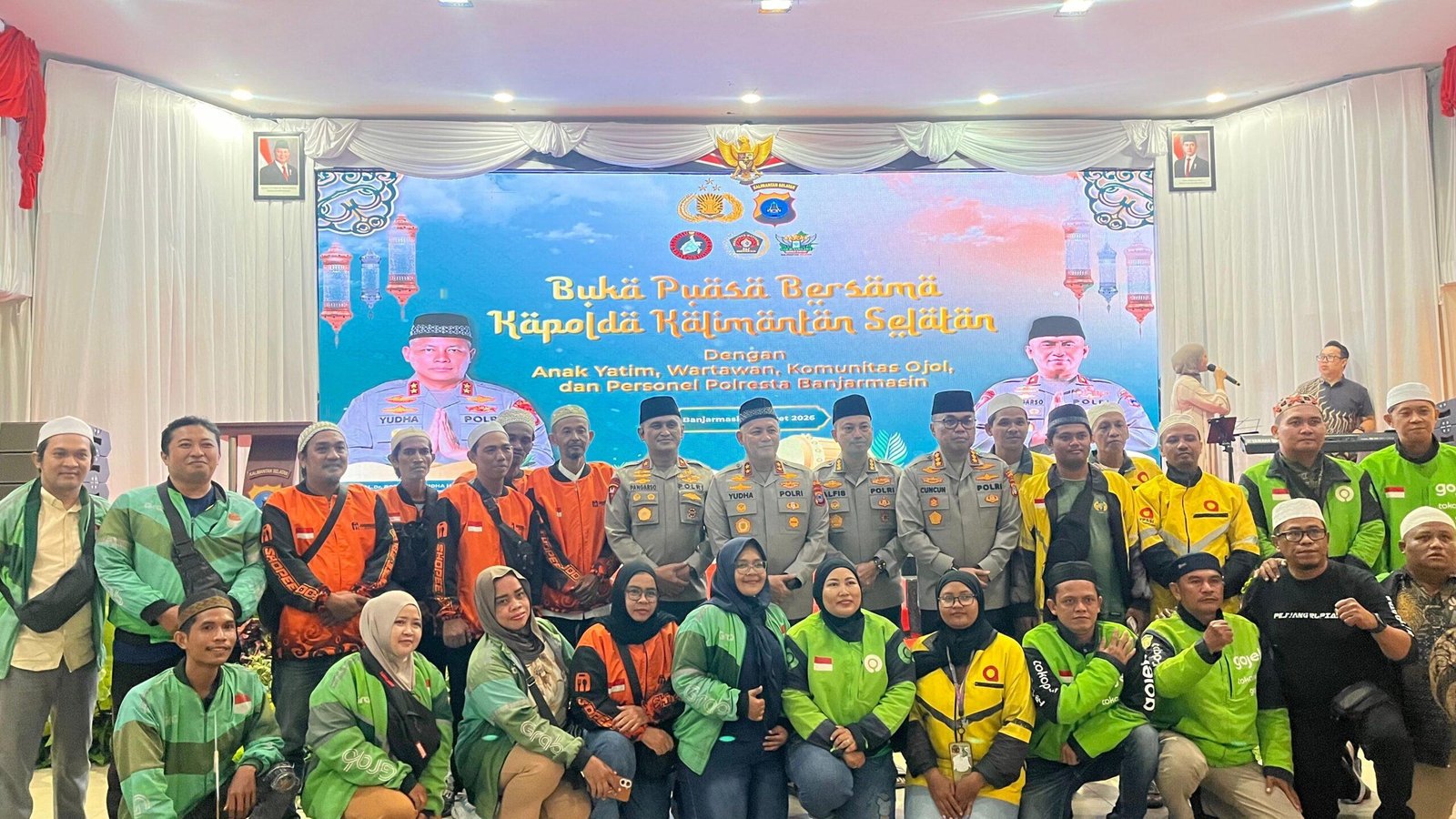 Hal tersebut disampaikan Kapolda saat menggelar silaturahmi dan buka puasa bersama puluhan pengemudi ojol serta anak yatim di Aula Polresta Banjarmasin, Kamis (5/3/2026).