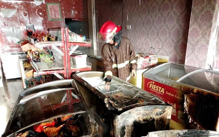 Toko Amah Frozen Food di Jalan Perjuangan Simpang 3 Sungai Sipai Kecamatan Martapura Kabupaten Banjar, terbakar pada Jumat(11/8/2023) pagi.