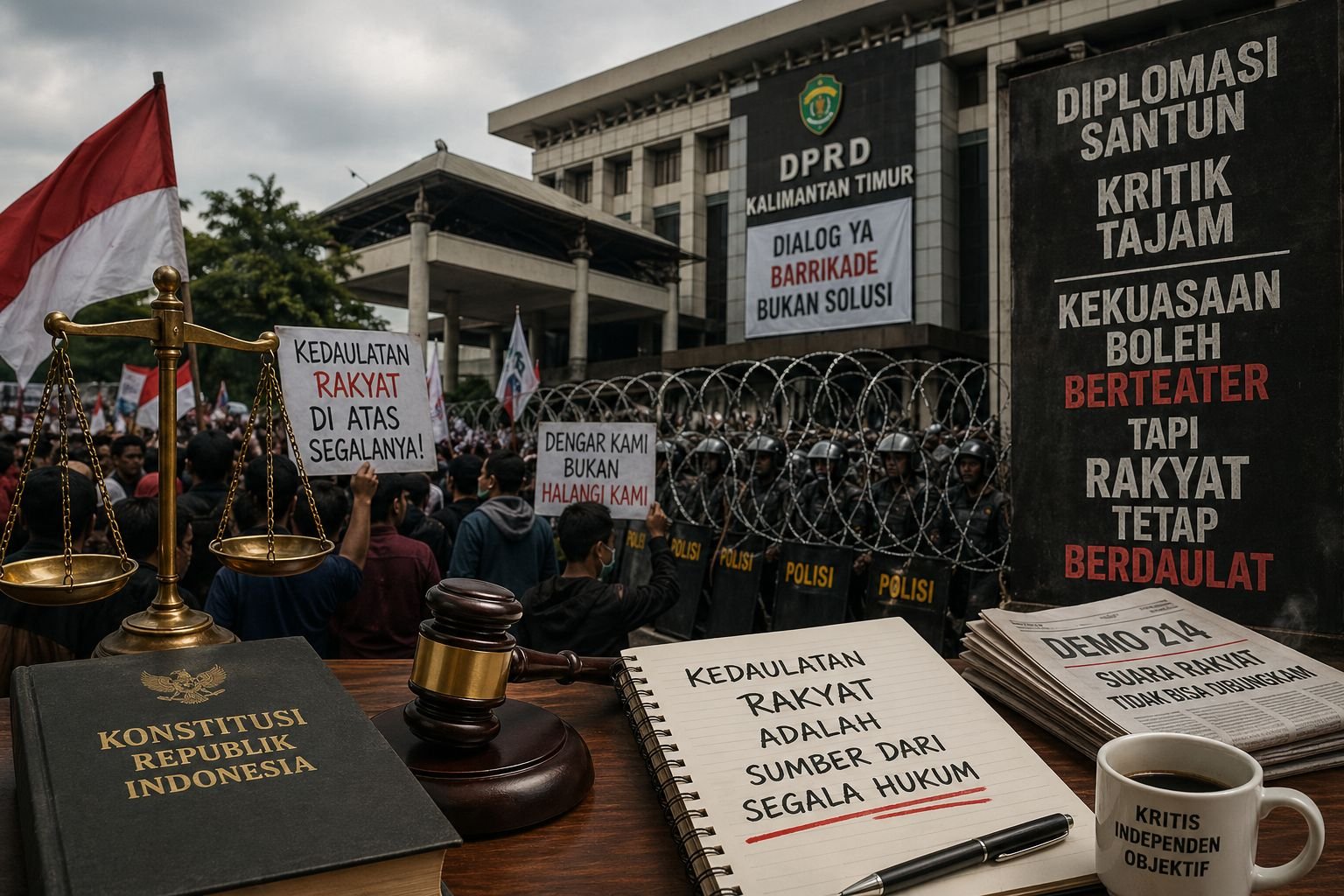 Kaltim tidak sedang baik-baik saja selama suara kritis masih dijawab dengan barikade besi. Sebagai pengamat, saya akan terus berdiri di tengah—menjaga komunikasi dengan pembuat kebijakan agar mereka tetap membumi, sembari menyuarakan dengan lantang bahwa kedaulatan rakyat tidak boleh dikalahkan oleh teatrikal politik mana pun.