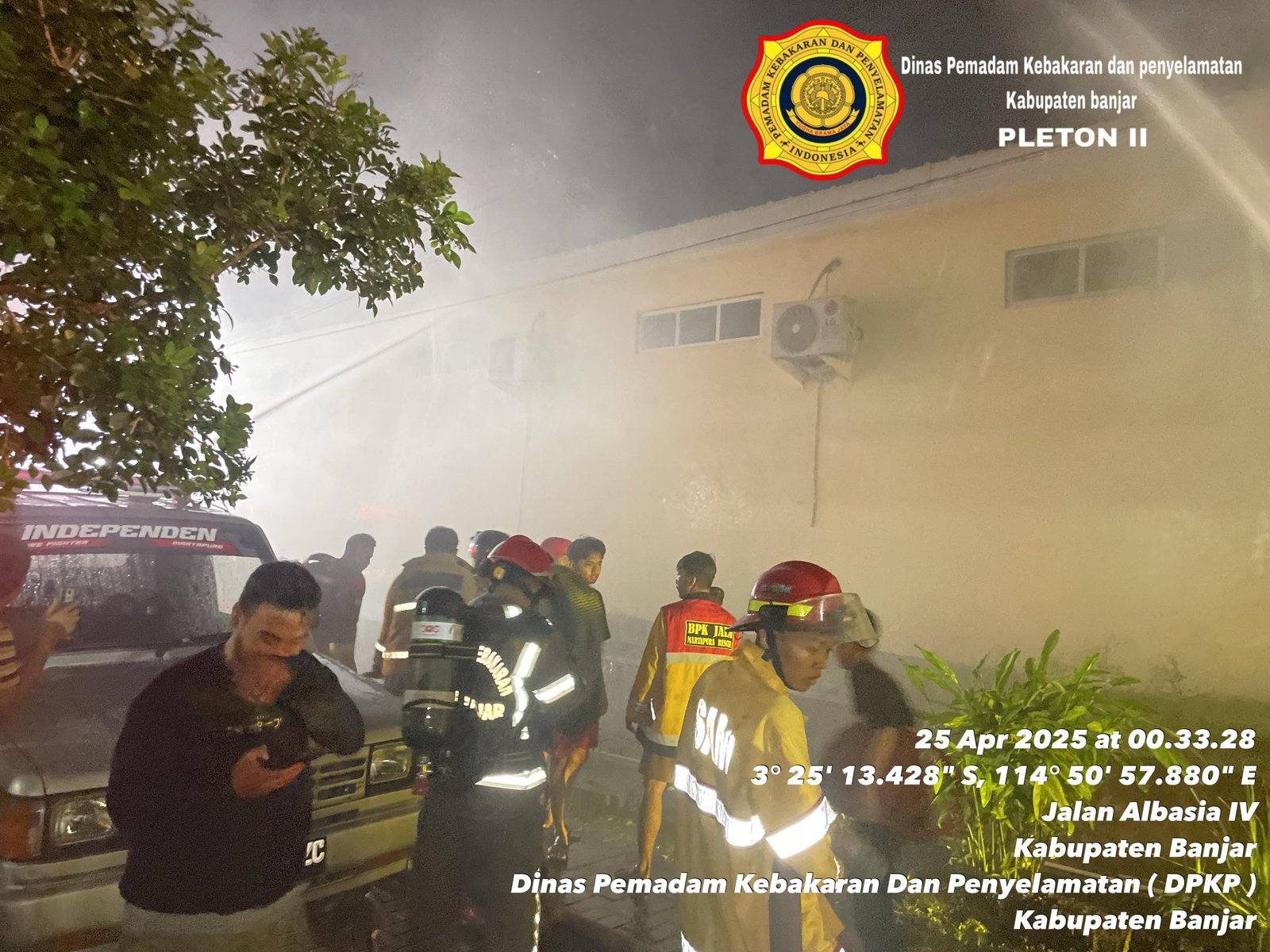 Dinas Pemadam Kebakaran dan Penyelamatan (DPKP) Kabupaten Banjar bersama relawan bergerak cepat setelah menerima laporan dan tiba di lokasi pada pukul 00.28 Wita. Sebanyak 15 personel dengan tiga unit mobil pemadam dikerahkan untuk menjinakkan api.