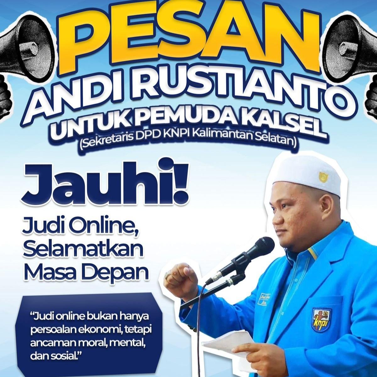 Kotabaru, Ricek.ID – Sekretaris Dewan Pimpinan Daerah (DPD) Komite Nasional Pemuda Indonesia (KNPI) Kalimantan Selatan, Andi Rustianto, mengimbau seluruh pemuda agar menjauhi praktik judi online yang kian marak dan dinilai merusak masa depan generasi muda.