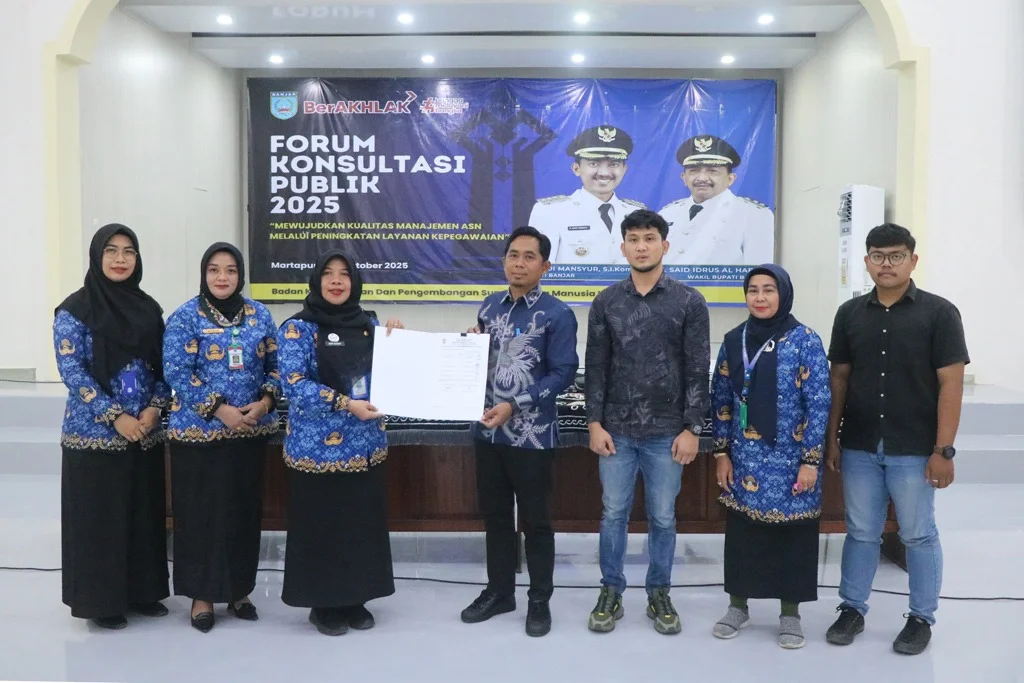 Martapura, Ricek.ID – Dalam upaya meningkatkan mutu pelayanan kepegawaian di lingkungan Pemerintah Kabupaten Banjar, Badan Kepegawaian dan Pengembangan Sumber Daya Manusia (BKPSDM) Kabupaten Banjar menggelar Forum Konsultasi Publik (FKP) 2025 di Aula BKPSDM Martapura, Selasa (28/10/2025).