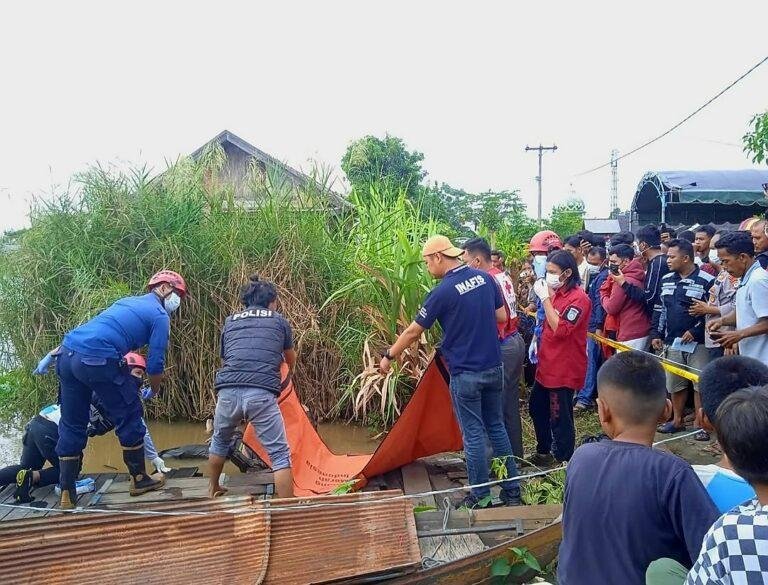 Saksi kemudian membawa jenazah ke tepi sungai dan menginformasikan kejadian tersebut kepada warga sekitar.