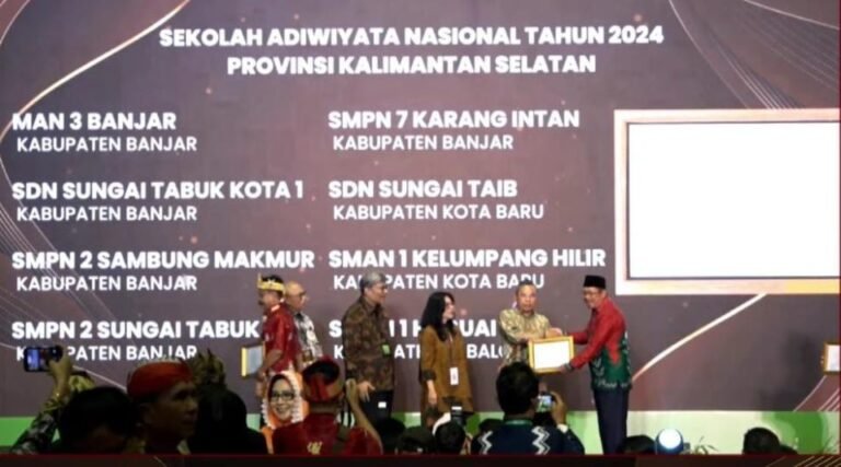 Lima sekolah di Kabupaten Banjar meraih penghargaan Adiwiyata Nasional 2024 dari Kementerian Lingkungan Hidup dan Kehutanan (KLHK).