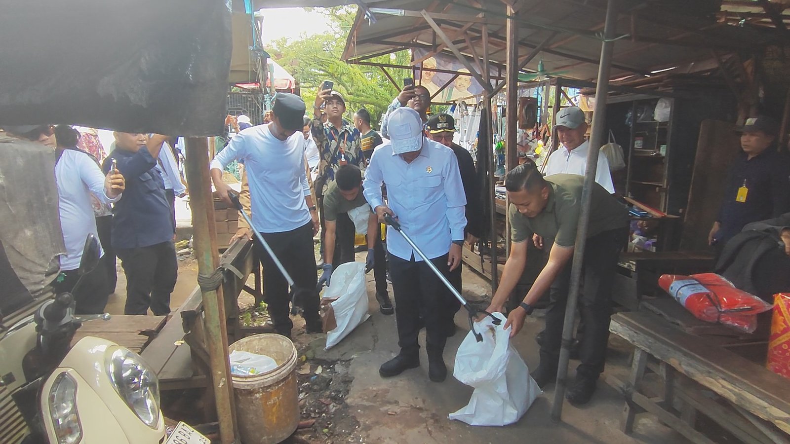 Menteri Lingkungan Hidup, Hanif Faisol Nurofiq turun langsung dalam Aksi Bersih-bersih di Lingkungan Pasar Batuah Martapura KabuPaten banjar Kalimantan Selatan. Foto: Ricek.ID