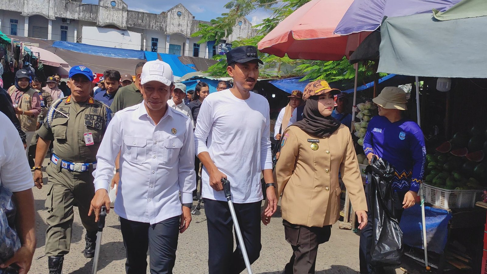 Menteri LH Hanif Faisol Nurofiq bersama Bupati Banjar Saidi Mansyur dan Ketua TP PKK Kabupaten Banjar Nurgita Tiyas, di area area Pasar Batuah Martapura. Foto: Ricek.ID