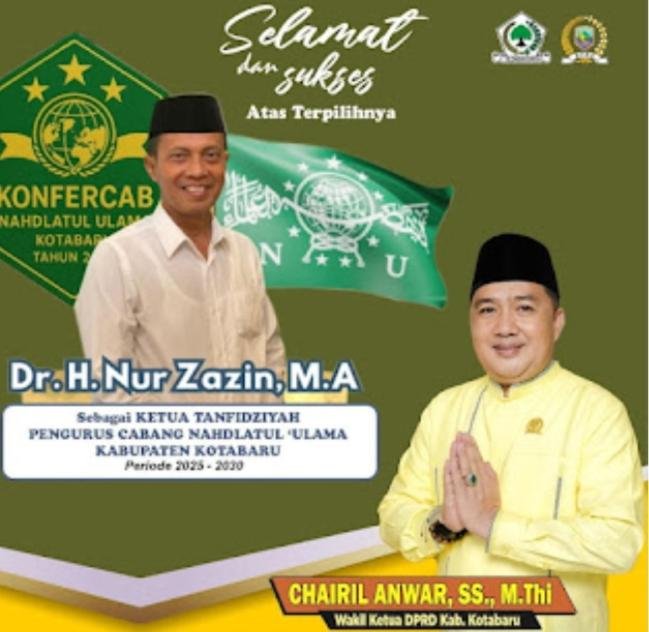 Ia juga mengucapkan selamat atas terpilihnya Dr. H. Nur Zazin, MA, sebagai Ketua Tanfidziah Pengurus Cabang Nahdlatul Ulama (PCNU) Kotabaru periode 2025-2030.