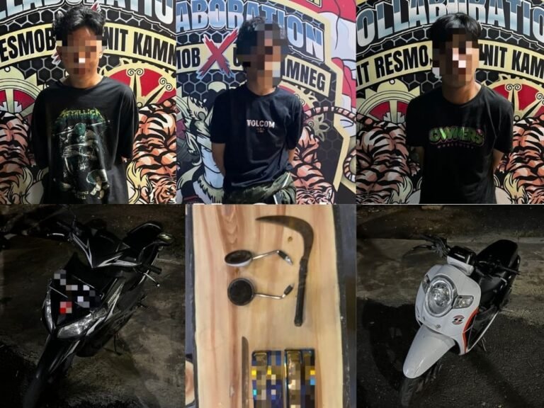 Ketiganya tertangkap di alamat masing-masing dengan Barang Bukti (BB) 1 (satu) unit sepeda motor Scoopy warna putih, 1 (satu) unit sepeda motor Vario warna hitam serta 2 (satu) buah senjata tajam yakni golok dan celurit.