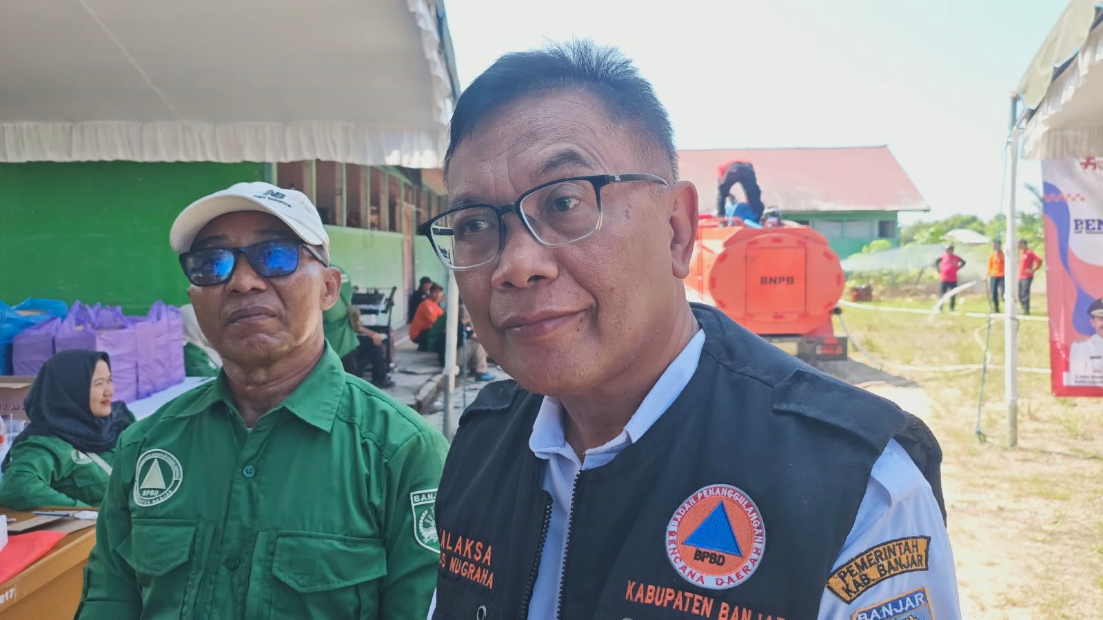 Kepala Pelaksana BPBD Banjar, Wasis Nugraha di lokasi pelatihan pencegahan dan mitigasi bencana. Foto: Haris Ricek.ID