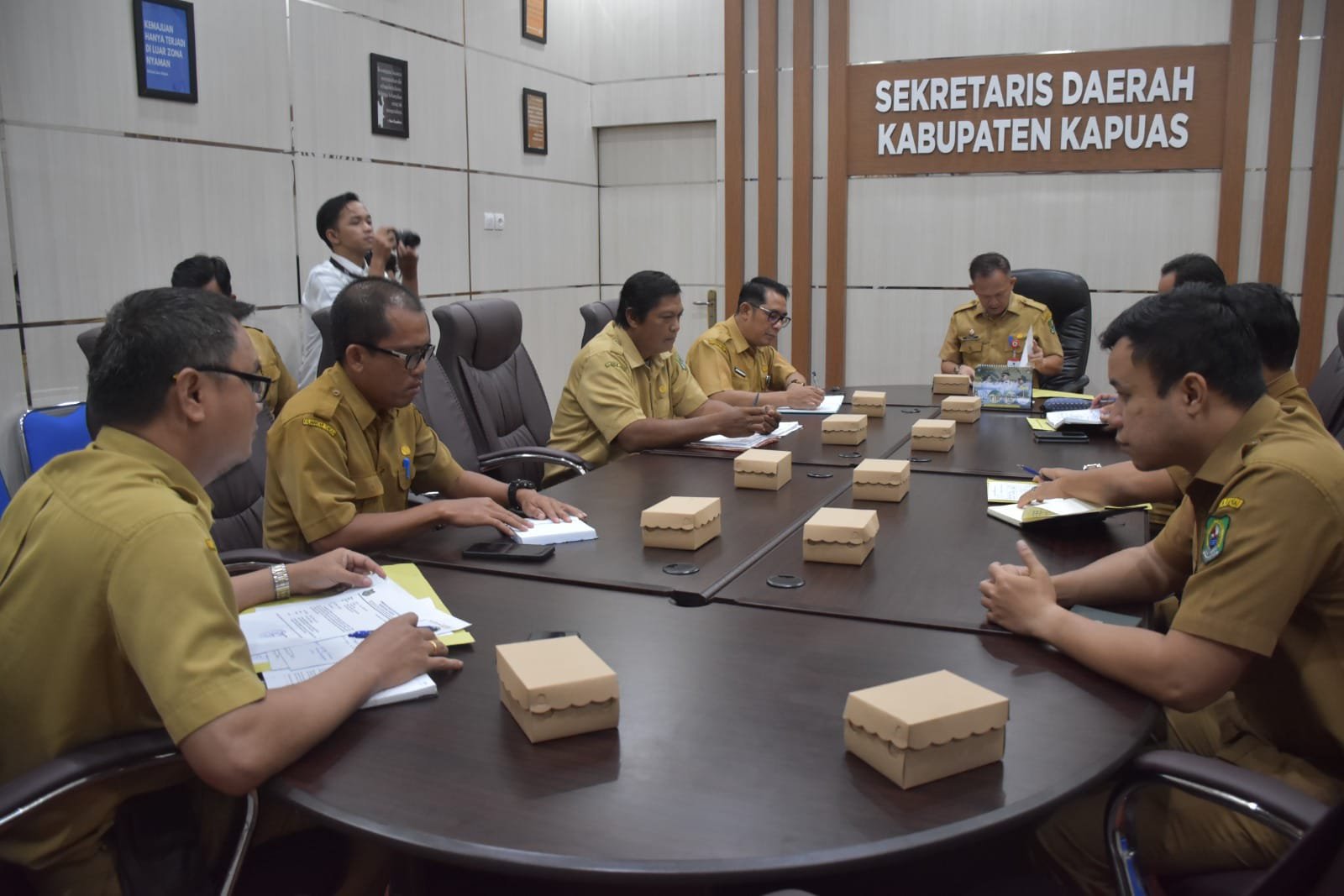 Rapat dipimpin Sekretaris Daerah Kabupaten Kapuas, Septedy, diikuti Asisten Administrasi Umum (Asisten III), Ahmad M Saribi, Kepala Dinas Penanaman Modal dan Pelayanan Terpadu Satu Pintu (DPMPTSP), dan perwakilan beberapa instansi terkait.