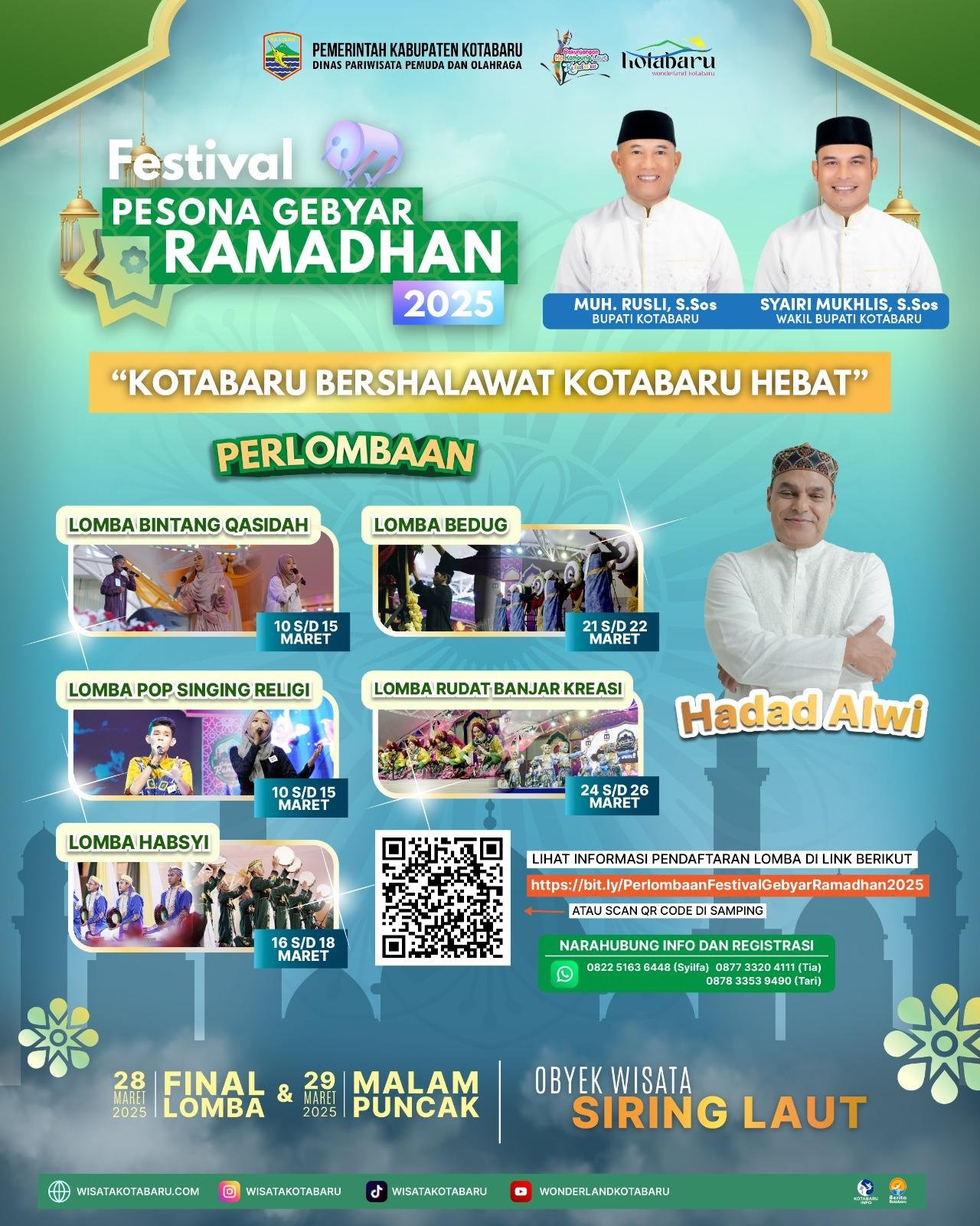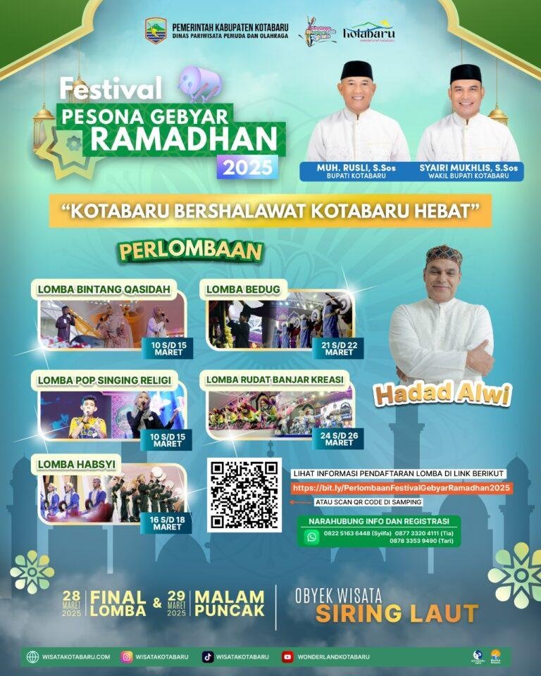 Kepala Disparpora Kabupaten Kotabaru, Sony Tua Halomoan, mengatakan bahwa Festival Gebyar Pesona Ramadhan 2025 akan menampilkan berbagai lomba bernuansa Islami dan religi.