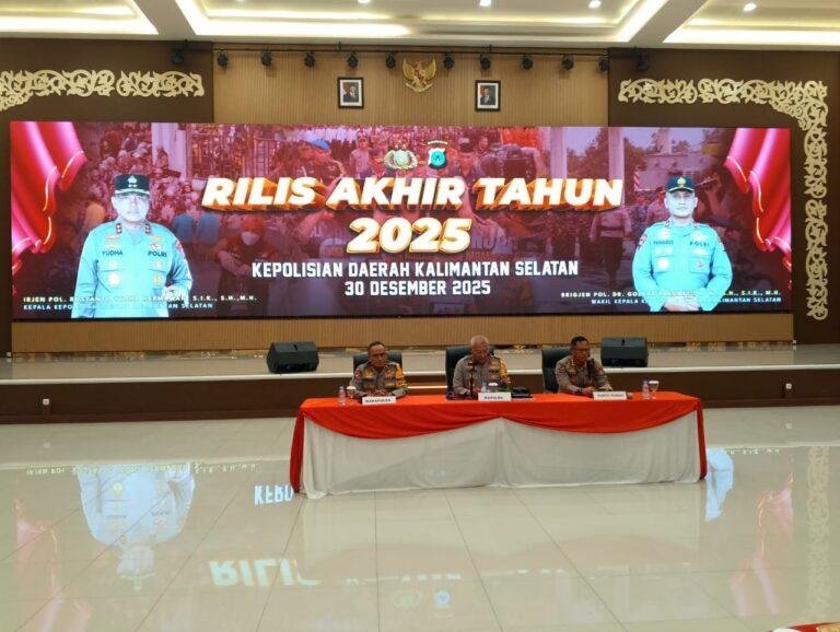 Banjarbaru, Ricek.ID – Kepolisian Daerah Kalimantan Selatan (Polda Kalsel) adakan konferensi pers rilis akhir tahun yang digelar di Mapolda Kalsel, Selasa (30/12/2025), terungkap bahwa Kalimantan Selatan mengalami hal positif dalam bidang keamanan dan ketertiban masyarakat (kamtibmas).