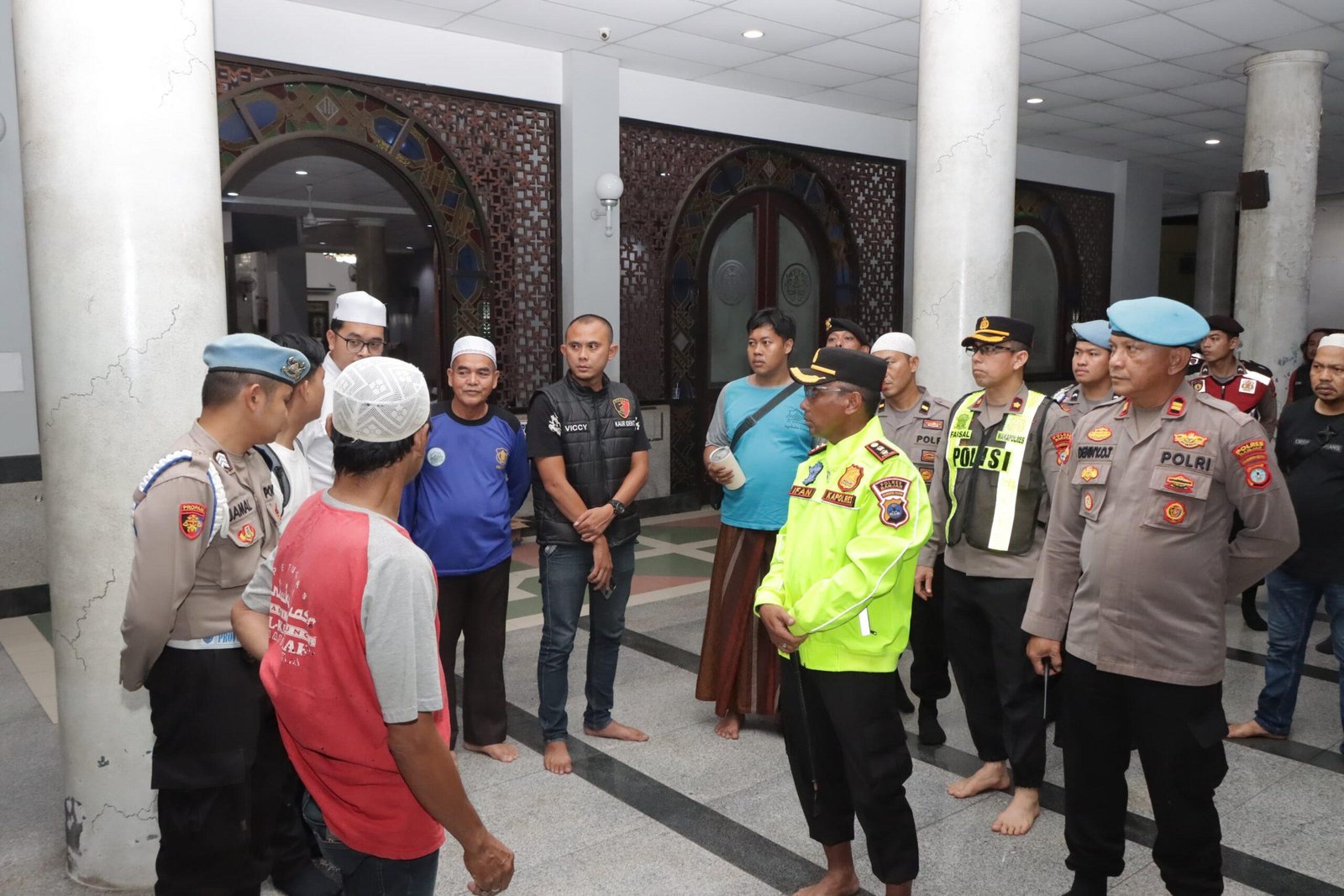 Dari rekaman CCTV, terlihat terduga pelaku mengenakan kaos berwarna putih memasuki area masjid, kemudian ia melarikan diri usai melakukan perbuatannya.