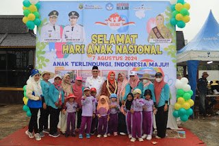Dalam sambutannya Bunda Paud Hj Fatma Idiana mengatakan, tema peringatan Hari Anak Nasional, yaitu Anak Terlindungi Indonesia Maju.