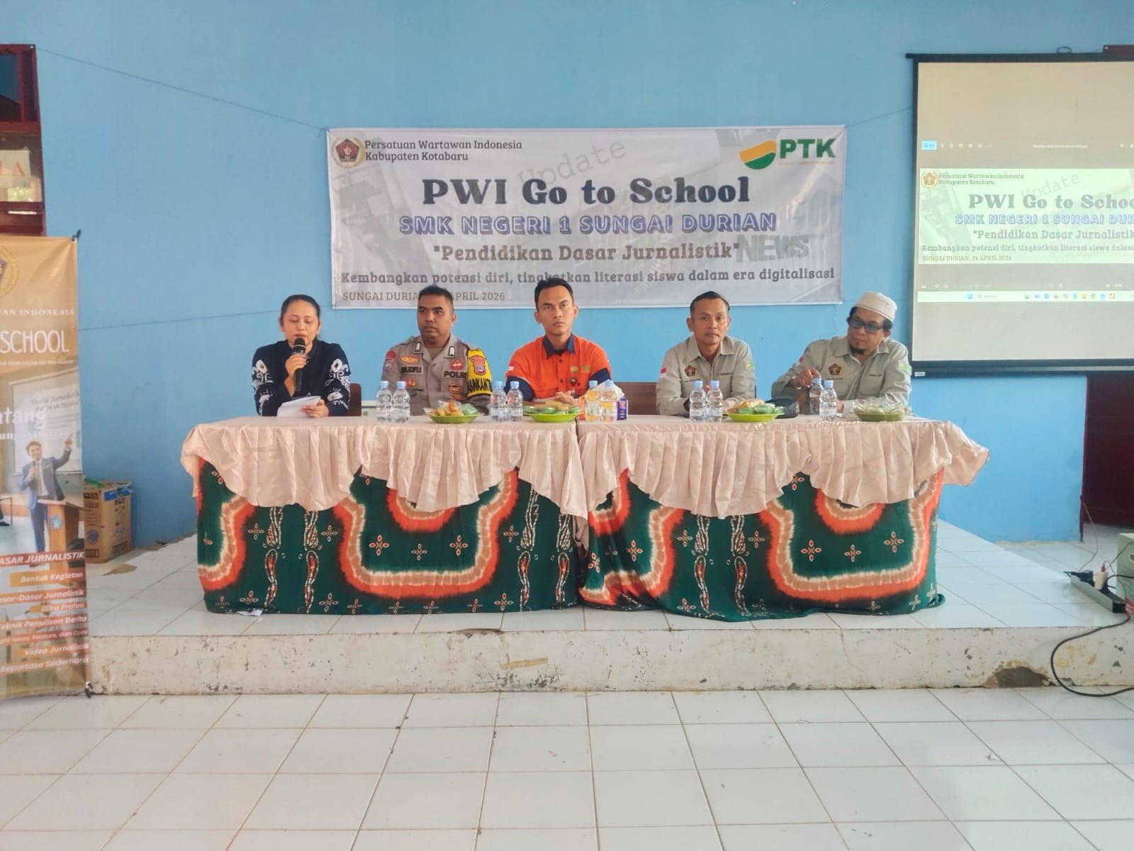 Ricek.ID- Persatuan Wartawan Indonesia (PWI) Kabupaten Kotabaru Kalimantan Selatan, kembali mendorong peningkatan literasi generasi muda melalui program PWI Go to School yang digelar di SMKN 1 Sungai Durian, Jumat (24/4/2026).