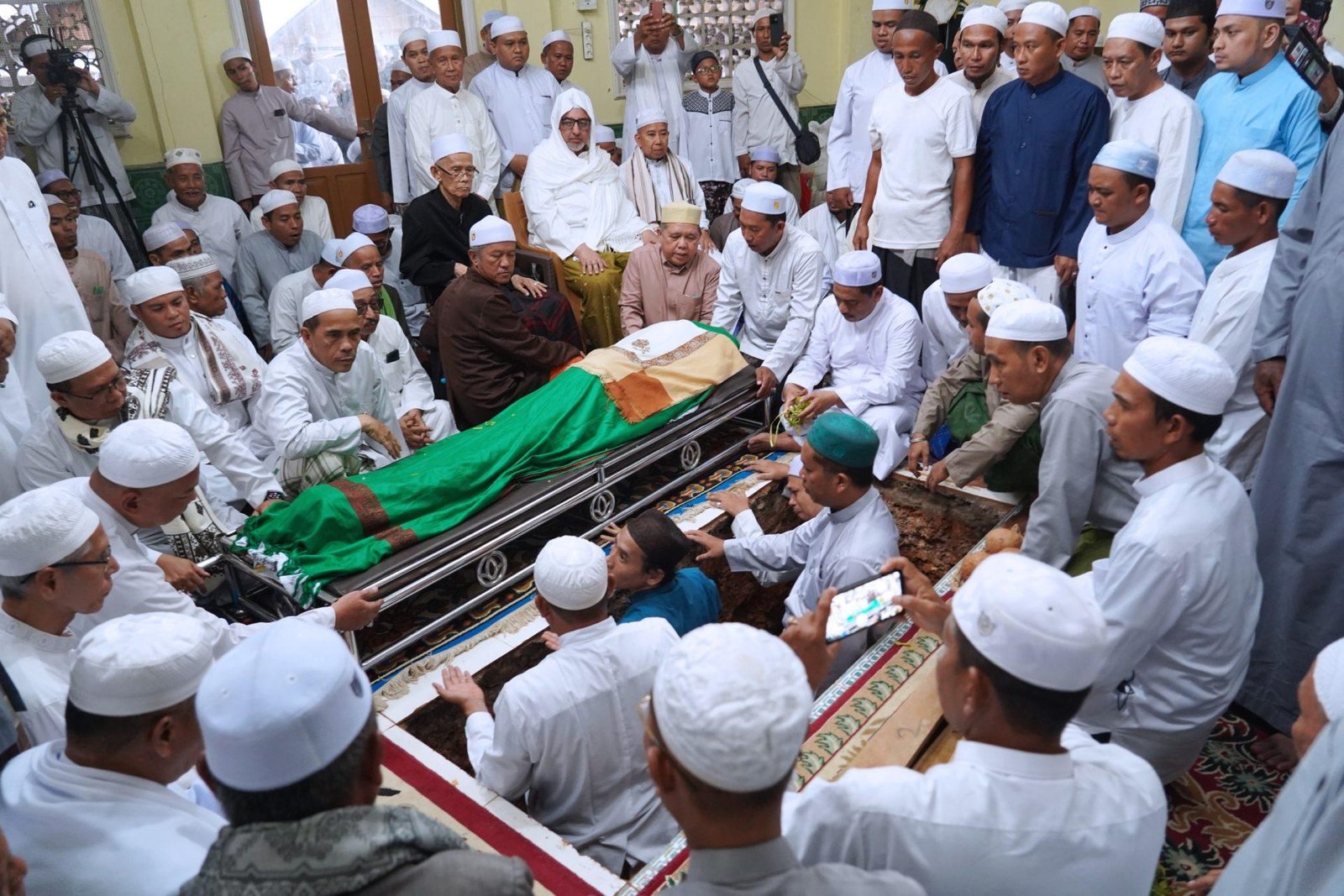 Di tengah kerumunan pelayat, tampak hadir sejumlah tokoh, termasuk Habib Zakie asal Solo, Jawa Tengah, dan Wakil Bupati Banjar, Habib Idrus Al Habsyi.