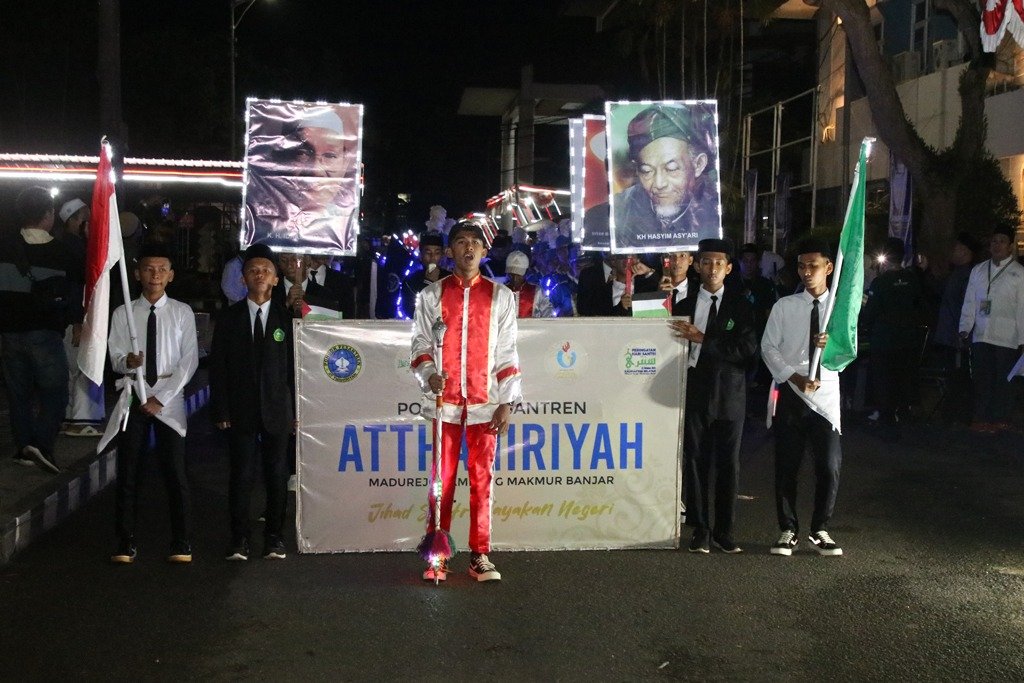 Ribuan Santri dari berbagai Pondok Pesantren memeriahkan kegiatan yang dilepas oleh Bupati Banjar H Saidi Mansyur dari halaman Kantor Pemerintahan Daerah, untuk menempuh rute yang telah ditetapkan yakni Jalan A Yani, Jalan Sasaran, Pangeran Abdurrahman hingga Pangeran Hidayaullah.