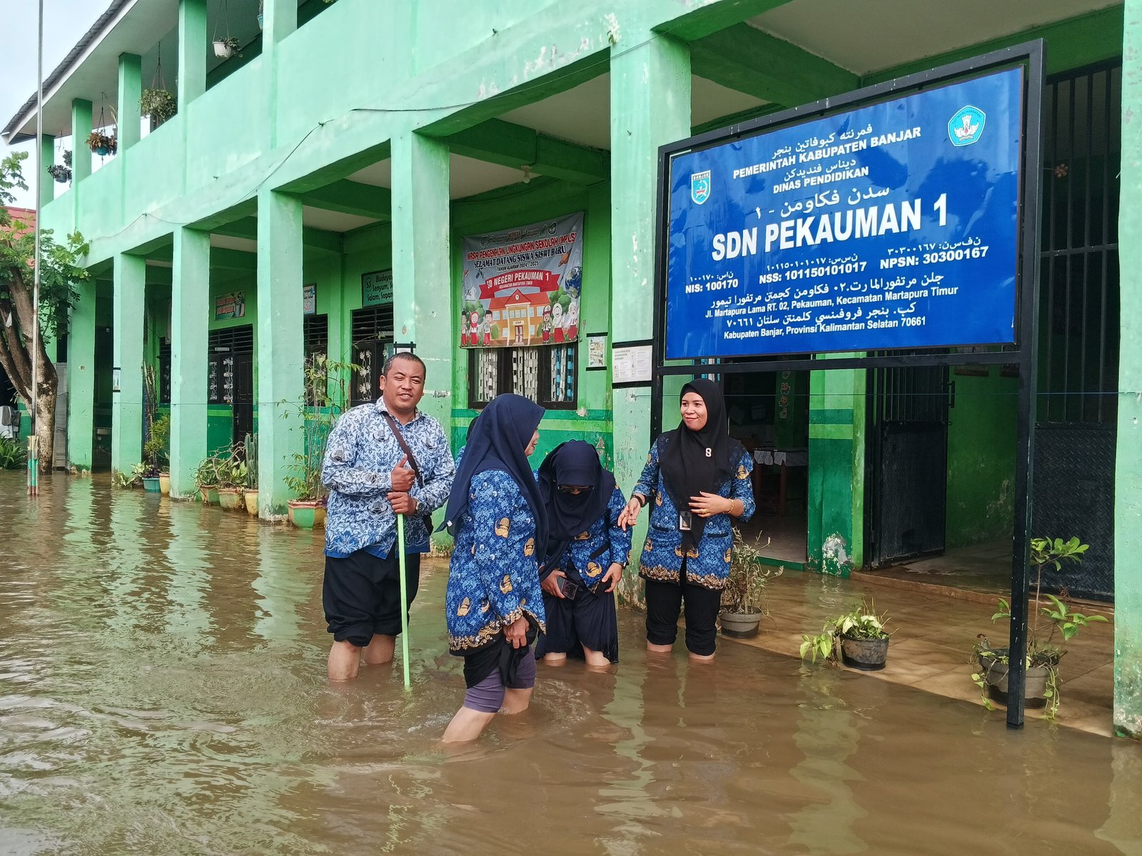 Riceknews.id – Sekolah Dasar Negeri (SDN) Pekauman 1 Kecamatan Martapura Timur, Kabupaten Banjar, terendam banjir. Seluruh siswanya dirumahkan.
