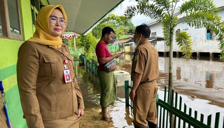 Banjir di wilayah Kabupaten Banjar bertahan dan terdampak pada sejumlah sarana prasarana dan infrastruktur termasuk lembaga pendidikan, Selasa (07/03/2023).