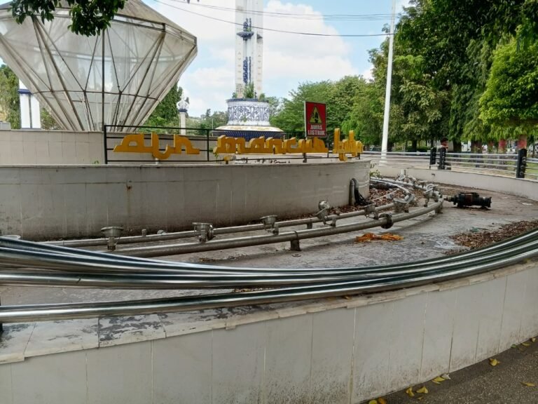 Sempat menyala dan menari – nari, Air Mancur Berlian di Taman Cahaya Bumi Selamat (CBS) Martapura sudah lama tidak berfungsi. Rupanya, air mancur yang digadang – gadang jadi ikon Martapura itu sudah rusak.