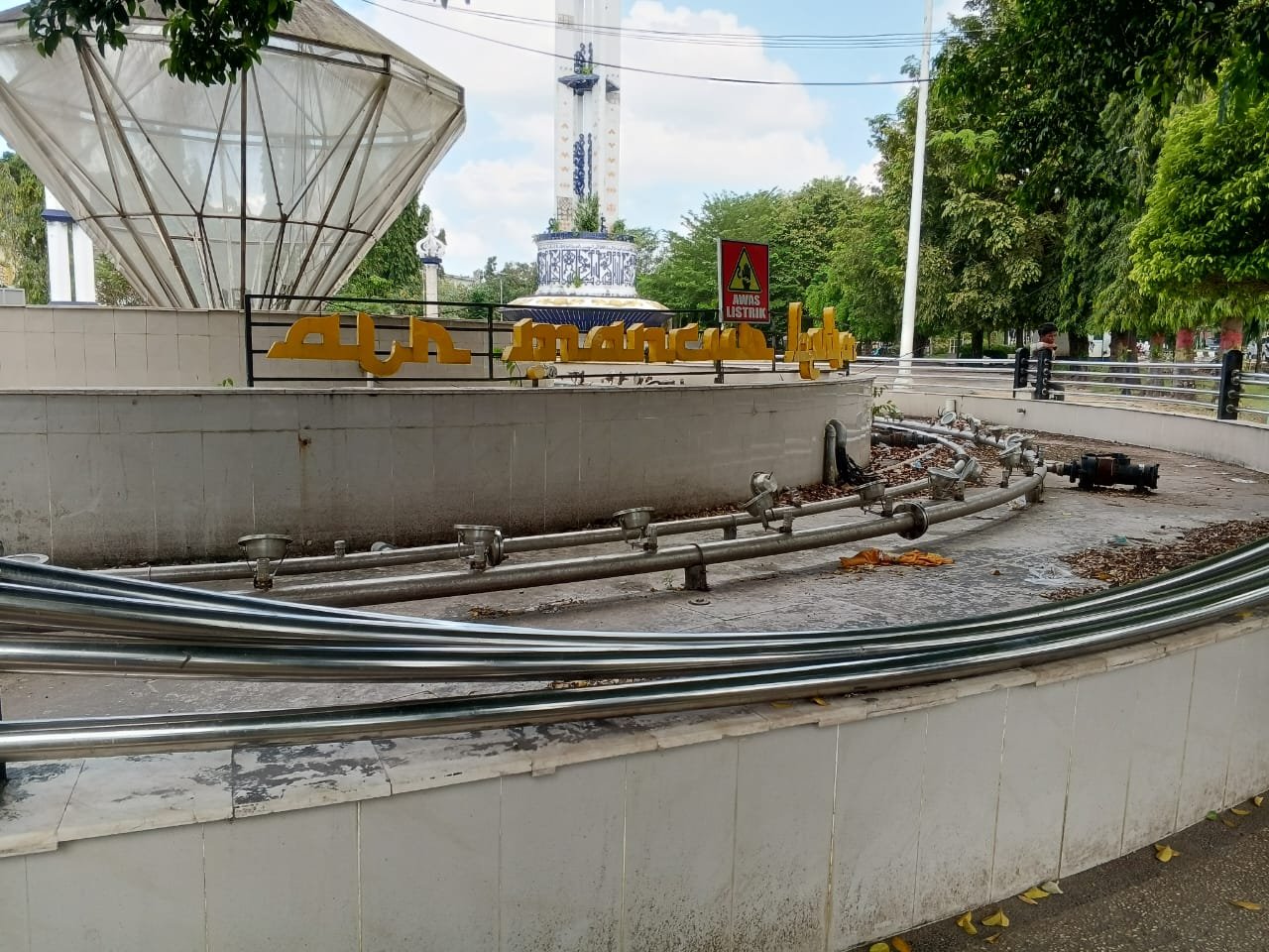 Sejumlah komponen air mancur juga dicuri oleh oknum tidak bertanggung jawab, hingga akhirnya tidak bisa difungsikan sama sekali.