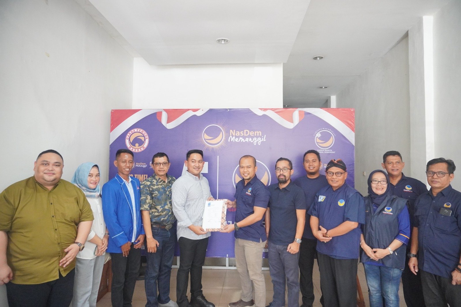 Setelah mendaftarkan diri ke DPC PKB Kota Banjarbaru, bakal calon Wali Kota Banjarbaru Andoko Abdi mendaftar pencalonan ke DPD Partai NasDem.