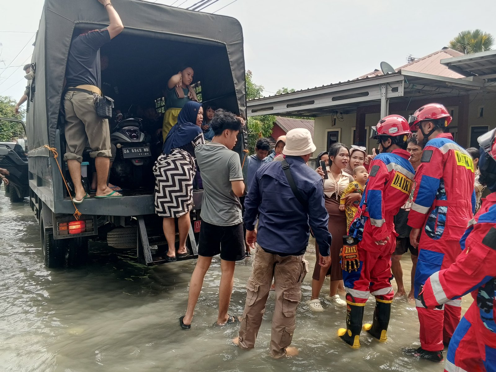 “Sempat terkendala karena menyesuaikan ukuran truk dengan gelombang air di jalan yang terendam. Gelombang air itu dapat merusak rumah warga,” ujar Iwan.