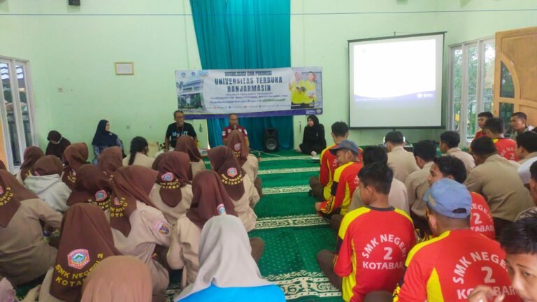 Universitas Terbuka Banjarmasin melakukan sosialisasi dan promosi program di SMKN 2 Kotabaru, Desa Stagen, Kecamatan Pulau Laut Utara, Jumat (26/01/24).