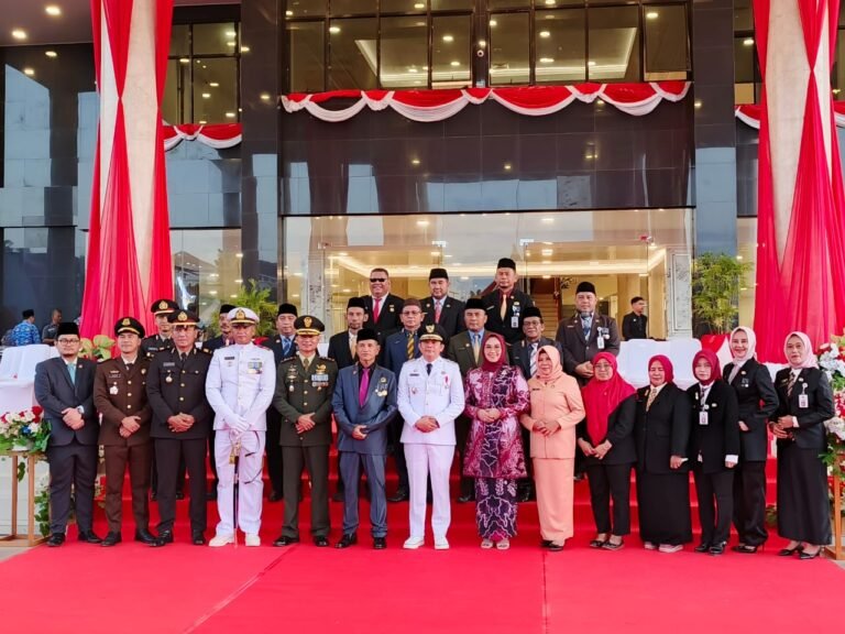 Upacara Penurunan Bendera Merah Putih Peringatan HUT ke-79 Kemerdekaan RI di halaman Perkantoran Bupati di Sebelimbingan, Sabtu (17/8/2024) berjalan lancar dan khidmat.